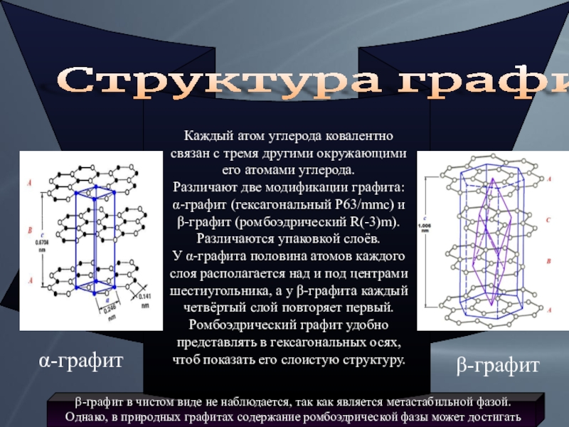 β-графит в чистом виде не наблюдается, так как является метастабильной фазой.