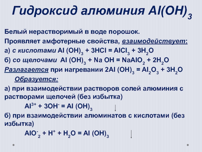 Al(OH)3 + NaOH = Nа[Al(OH)4 ]