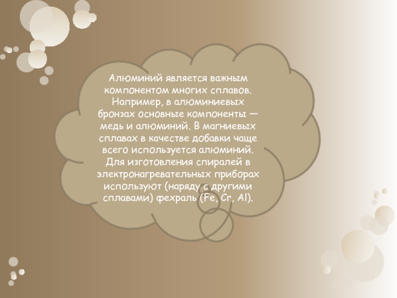 Алюминий образует сплавы почти со всеми металлами. Наиболее известны сплавы с медью и магнием (дюралюминий) и кремнием (силумин)