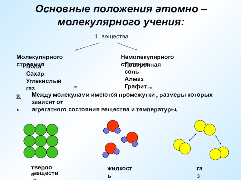 У веществ с молекулярным строением в твердом состоянии в узлах