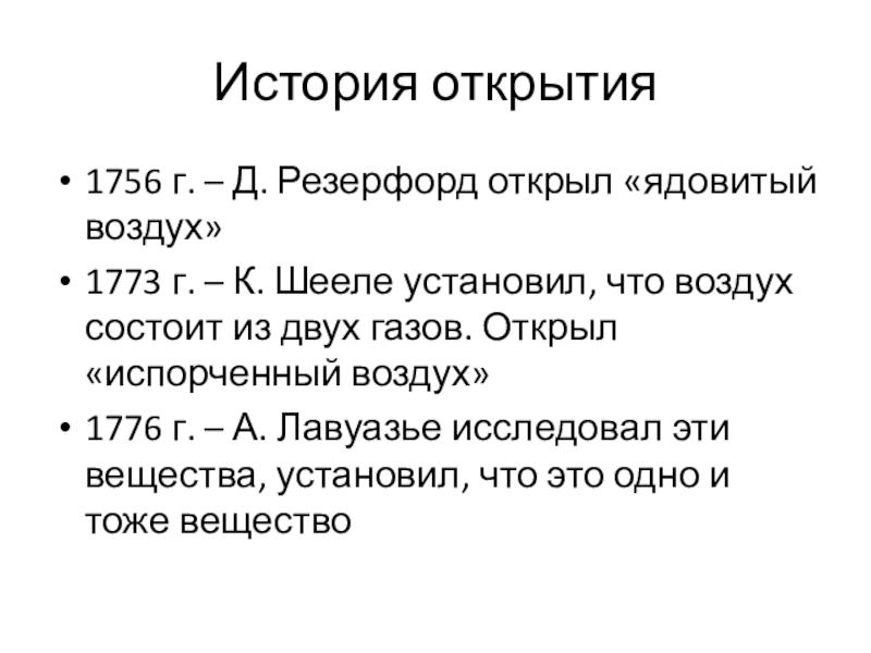 1776 г. – А. Лавуазье исследовал эти вещества, установил, что это одно и тоже вещество