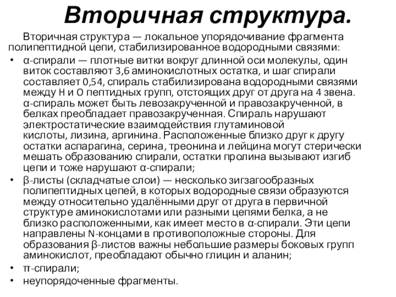 Вторичная структура — локальное упорядочивание фрагмента полипептидной цепи,