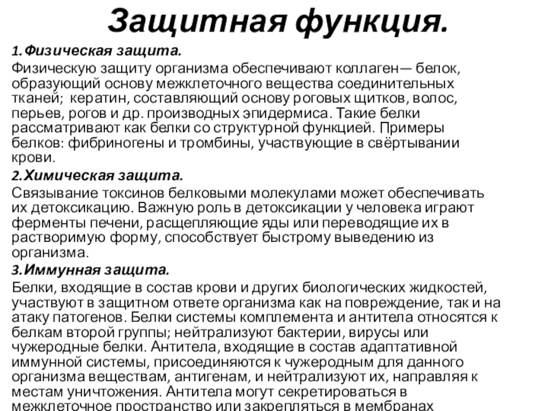 Физическую защиту организма обеспечивают коллаген— белок, образующий основу межклеточного