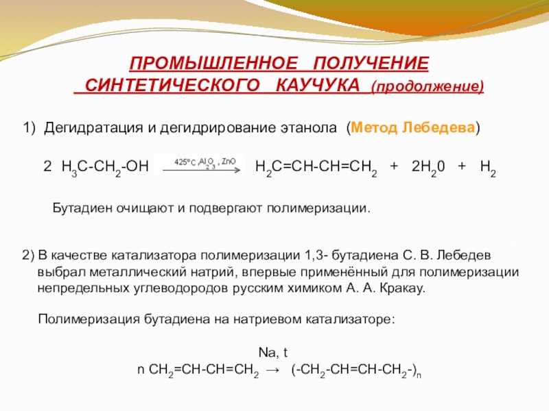 2) В качестве катализатора полимеризации 1,3- бутадиена С. В. Лебедев