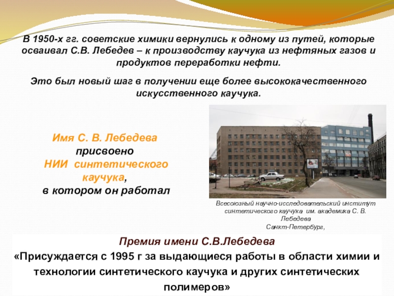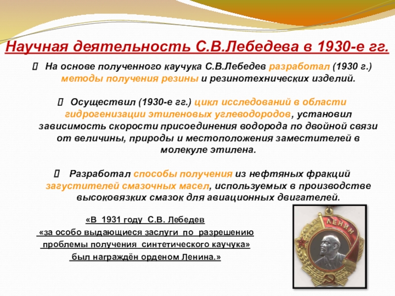 Это исследование стало научной основой для промышленного синтеза каучука.