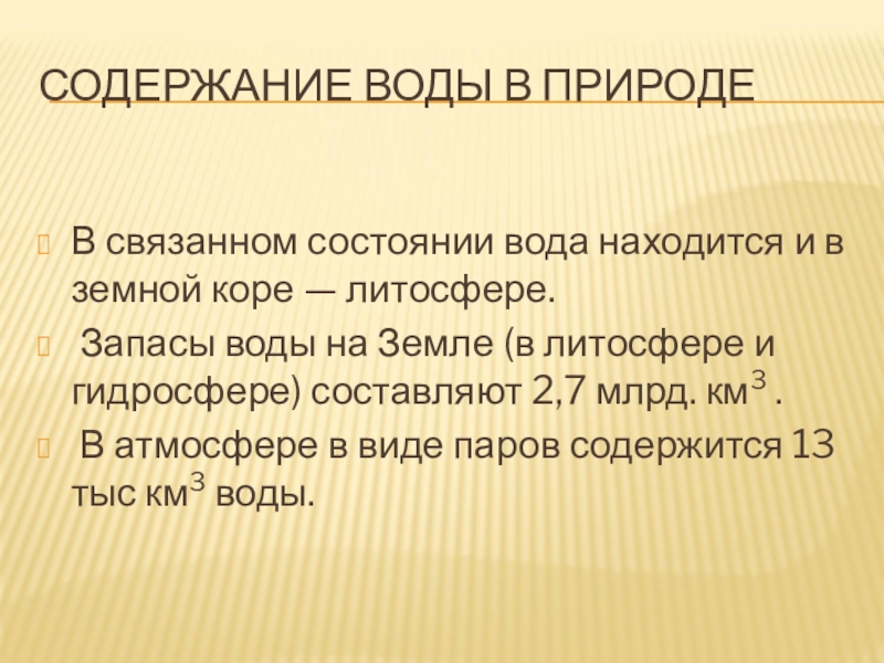 СОДЕРЖАНИЕ ВОДЫ В ПРИРОДЕ