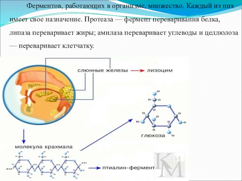 Слайд 5 Ферментов, работающих в организме, множество. Каждый из них имеет свое назначение.