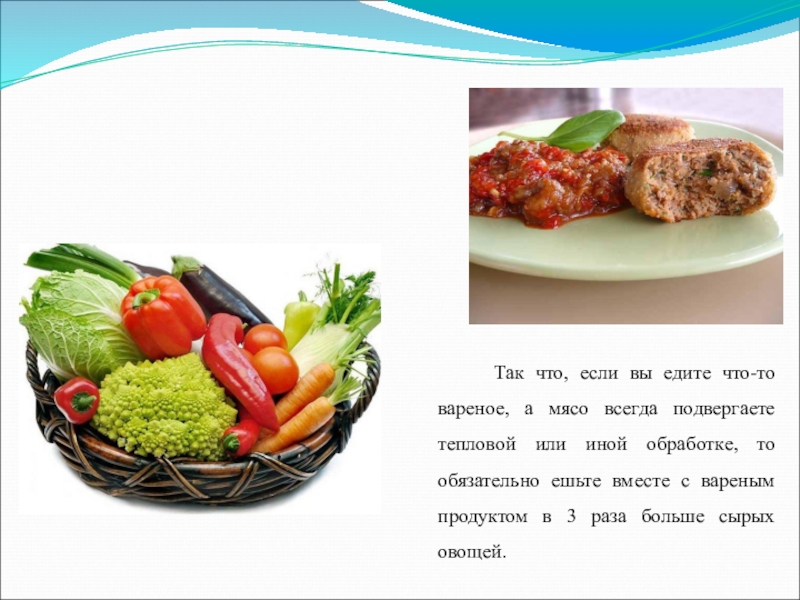 тепловой или иной обработке, то обязательно ешьте вместе с вареным продуктом в 3 раза больше сырых овощей.