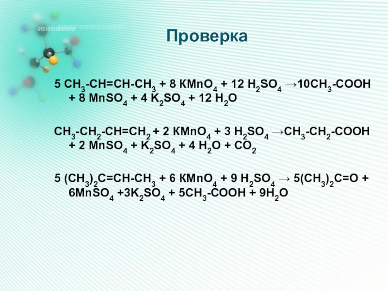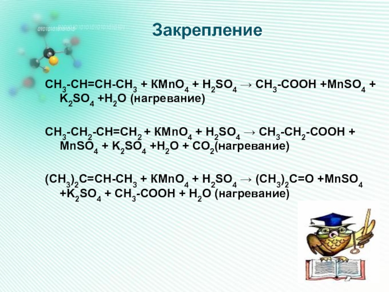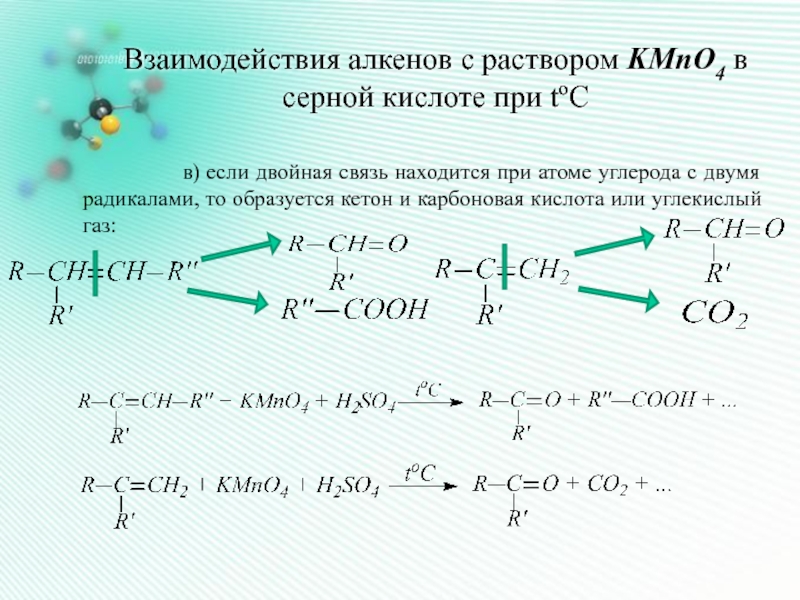 б) если двойная связь находится не на краю, то образуется смесь кислот: