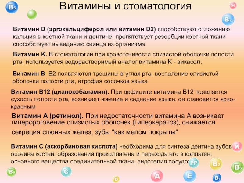 Витамин K. В стоматологии при кровоточивости слизистой оболочки полости рта, используется водорастворимый аналог витамина K - викасол.