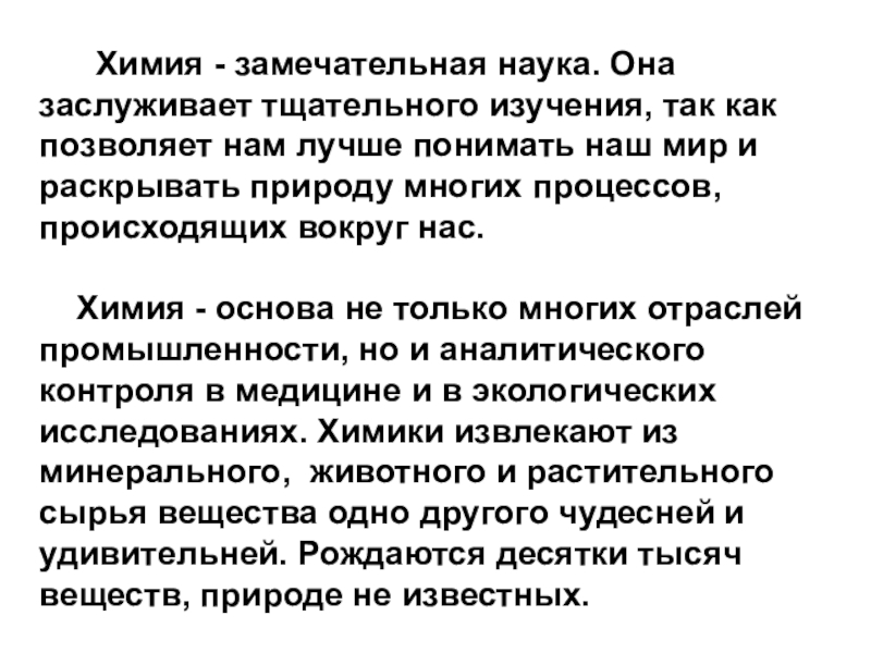Слайд 16 Химия - замечательная наука. Она заслуживает тщательного изучения,