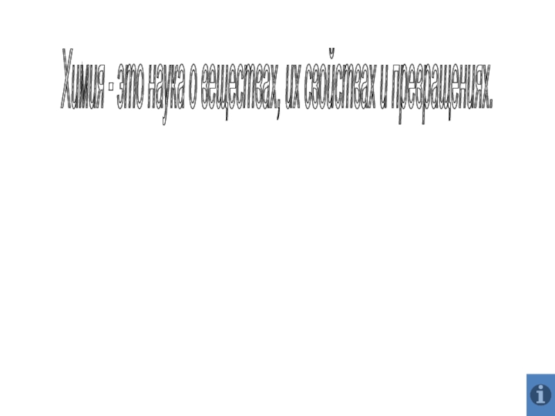 Слайд 2Химия - это наука о веществах, их свойствах и превращениях.
