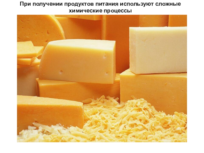 Слайд 31При получении продуктов питания используют сложные химические процессы