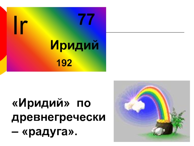 Слайд 15«Иридий» по древнегречески – «радуга».