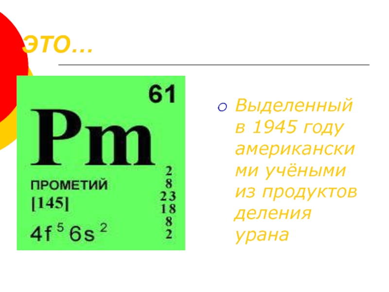 ЭТО…Выделенный в 1945 году американскими учёными из продуктов деления урана