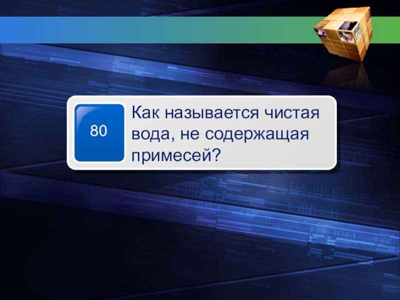 Слайд 74Как называется чистая вода, не содержащая примесей?