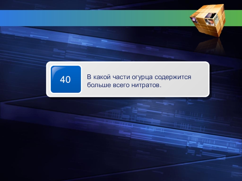 Слайд 42В какой части огурца содержится больше всего нитратов.