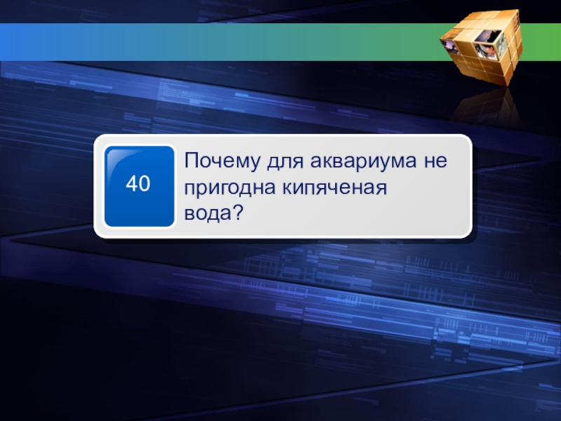 Слайд 72Почему для аквариума не пригодна кипяченая вода?