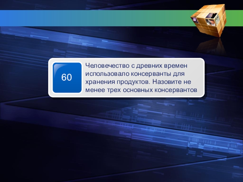 Слайд 58Человечество с древних времен использовало консерванты для хранения продуктов. Назовите не
