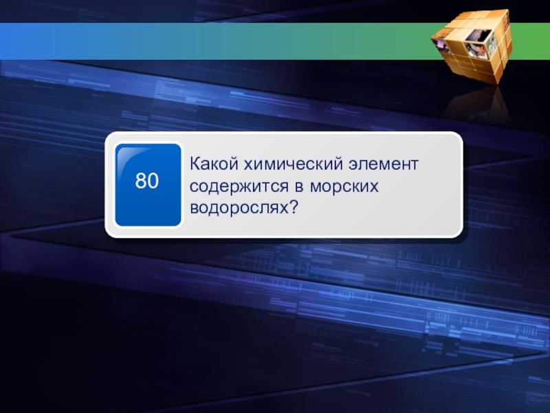 Слайд 64Какой химический элемент содержится в морских водорослях?