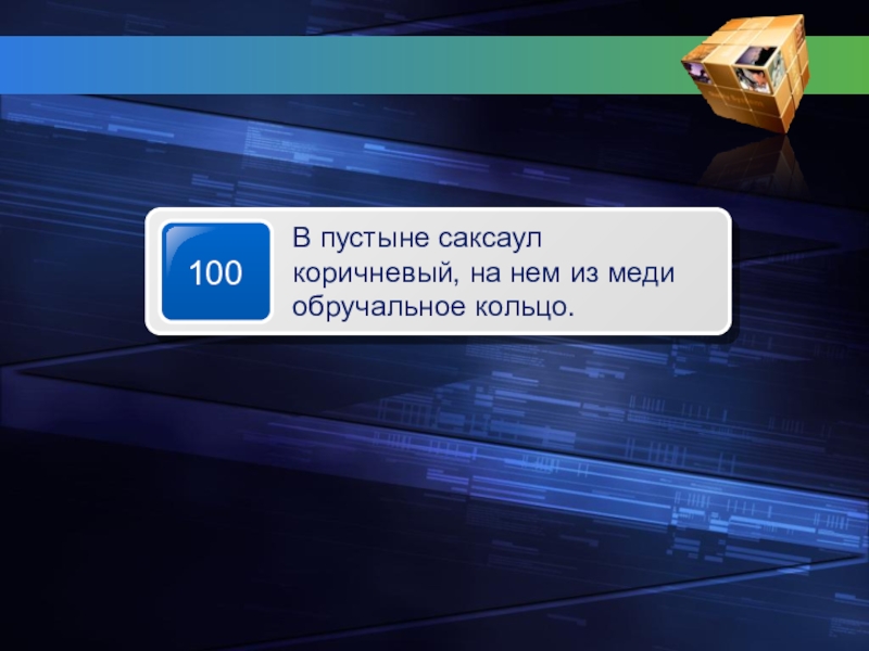 Слайд 50В пустыне саксаул коричневый, на нем из меди обручальное кольцо.