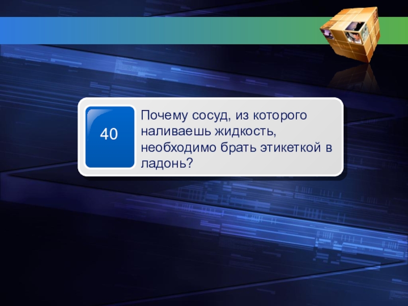 Слайд 67Почему сосуд, из которого наливаешь жидкость, необходимо брать этикеткой в ладонь?