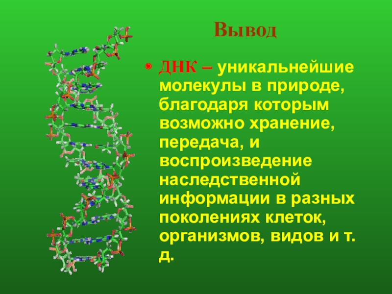 4. -фосфатные группировки находятся снаружи спирали, а основания внутри и расположены с одинаковы интервалом;