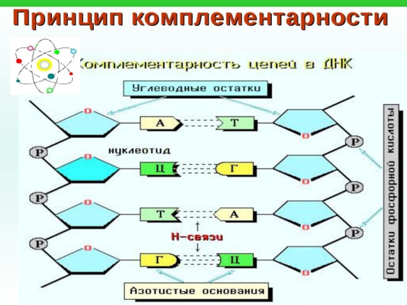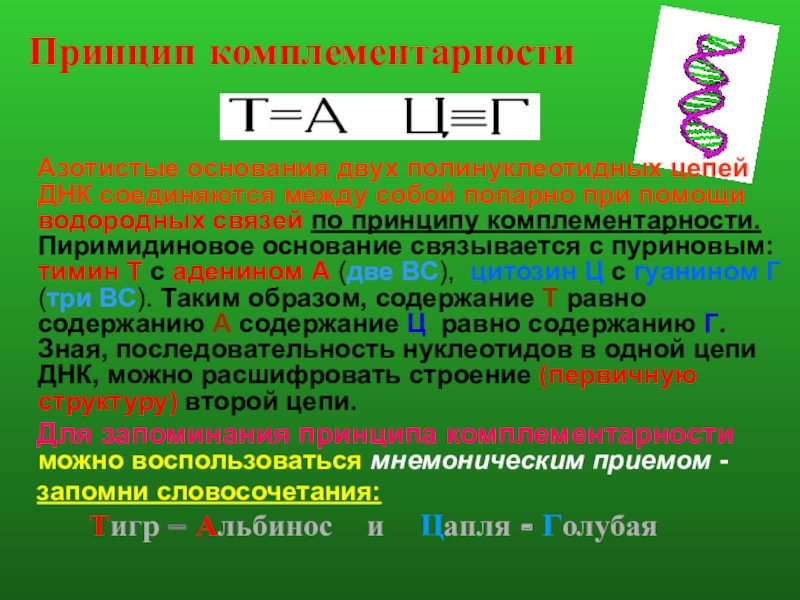 7. -пары, образуемые основаниями (А-Т и Г-Ц), в полинуклеотидные цепи комплементарны друг другу. .