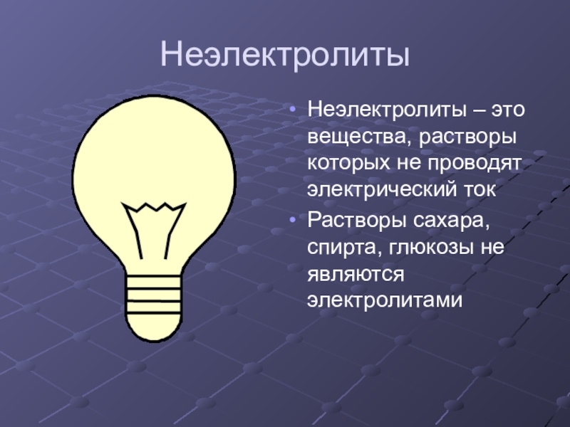 Неэлектролиты – это вещества, растворы которых не проводят электрический ток