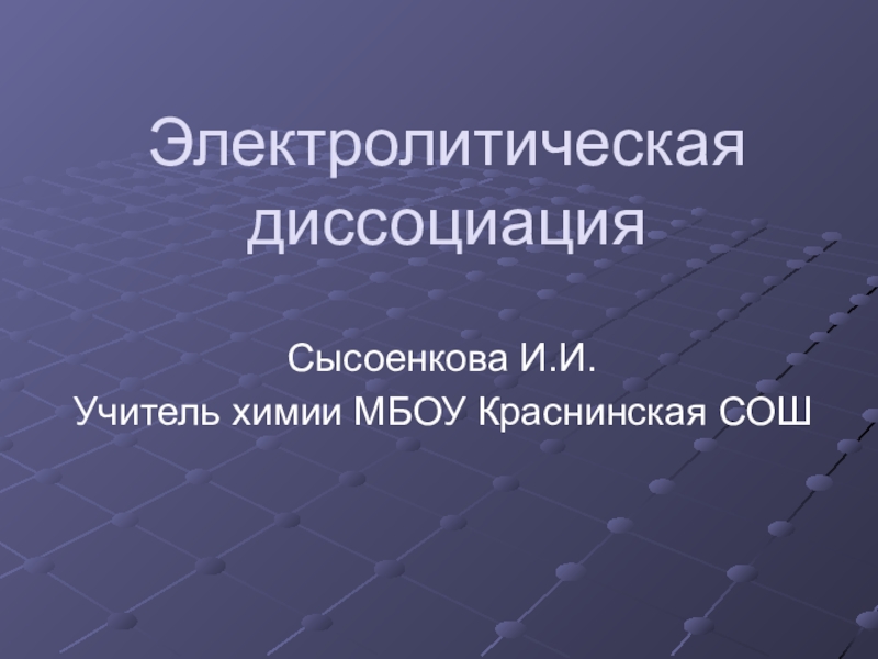 Электролитическая диссоциацияСысоенкова И.И.Учитель химии МБОУ Краснинская СОШ