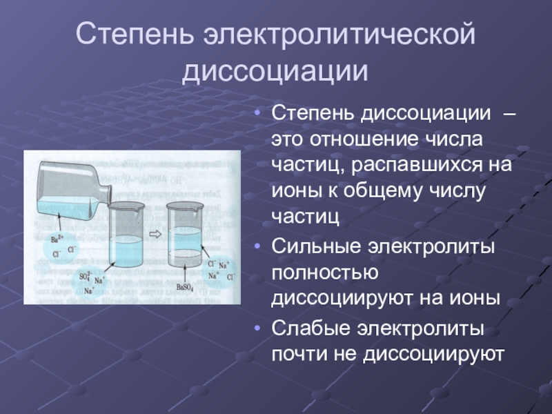 Слайд 4Степень электролитической диссоциации