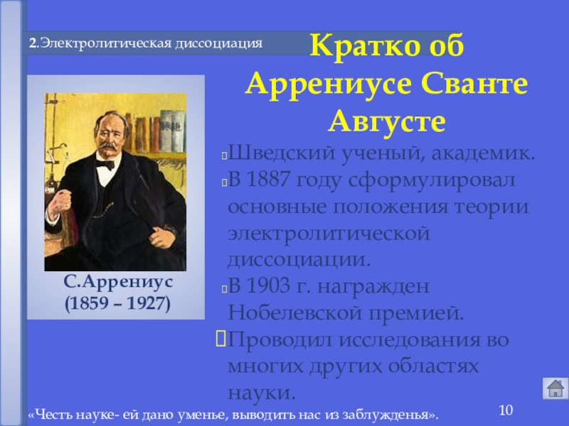 В 1887 году сформулировал основные положения теории электролитической диссоциации.