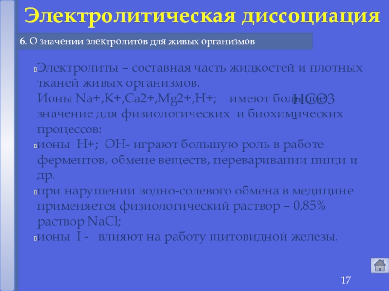 Электролиты – составная часть жидкостей и плотных тканей живых организмов.