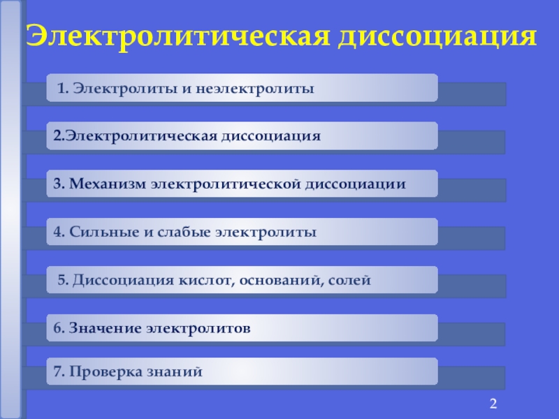 процесс распада молекул электролита на ионы в растворе или расплаве.