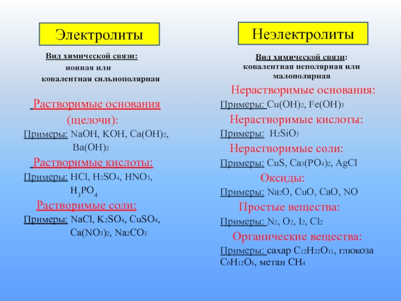 Примеры: CuS, Ca3(PO4)2, AgCl