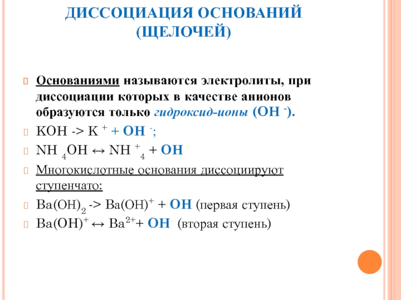 3. Почти все малорастворимые в воде соли, основания и гидроксид аммония (Ca3(PO4)2; Cu(OH)2; Al(OH)3; NH4OH);