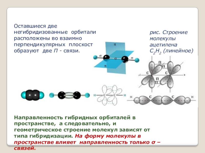 рис. Строение молекулы ацетилена С2Н2 (линейное)