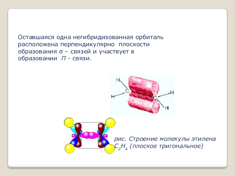рис. Строение молекулы этилена С2Н4 (плоское тригональное)