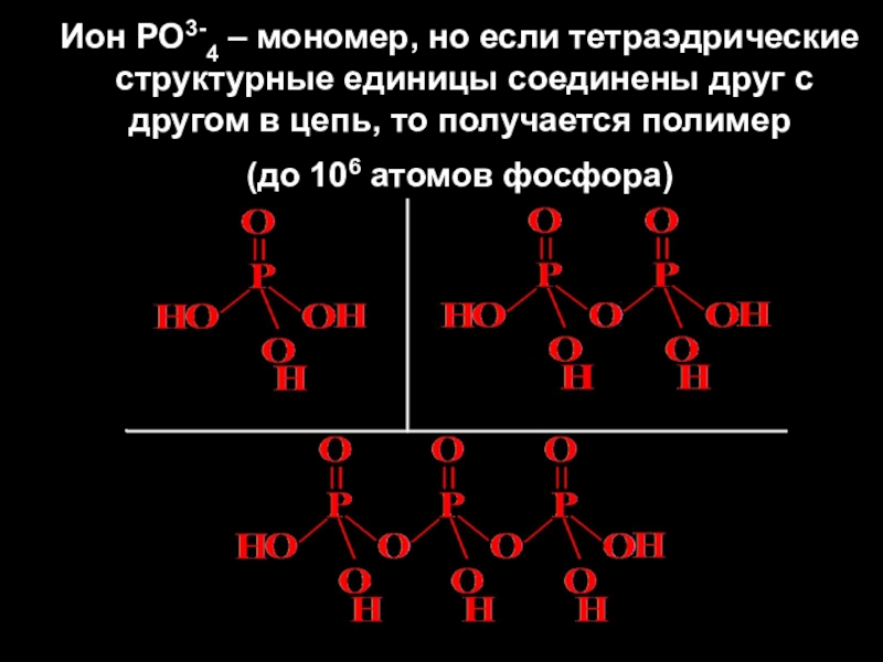 Ион РО3-4 – мономер, но если тетраэдрические    структурные единицы соединены друг с  другом