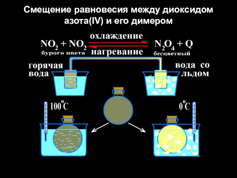 Слайд 9Смещение равновесия между диоксидом азота(IV) и его димером