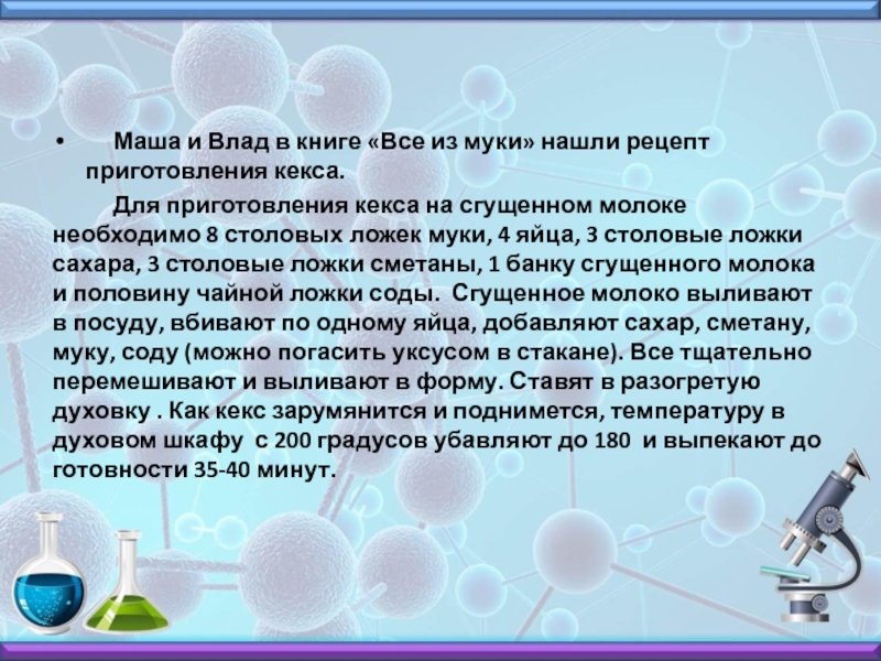 Слайд 6Маша выпекала кекс строго по написанному рецепту. Влад, послушав совет бабушки,