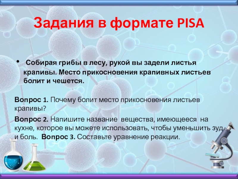 Задания в формате PISA Собирая грибы в лесу, рукой вы задели листья крапивы. Место прикосновения крапивных листьев