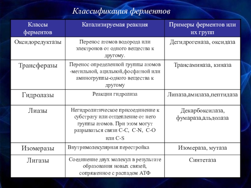 Ферменты выступают в роли катализаторов практически во всех биохимических реакциях,