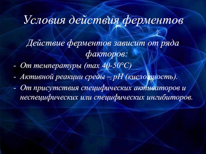 От присутствия специфических активаторов и неспецифических или специфических ингибиторов.