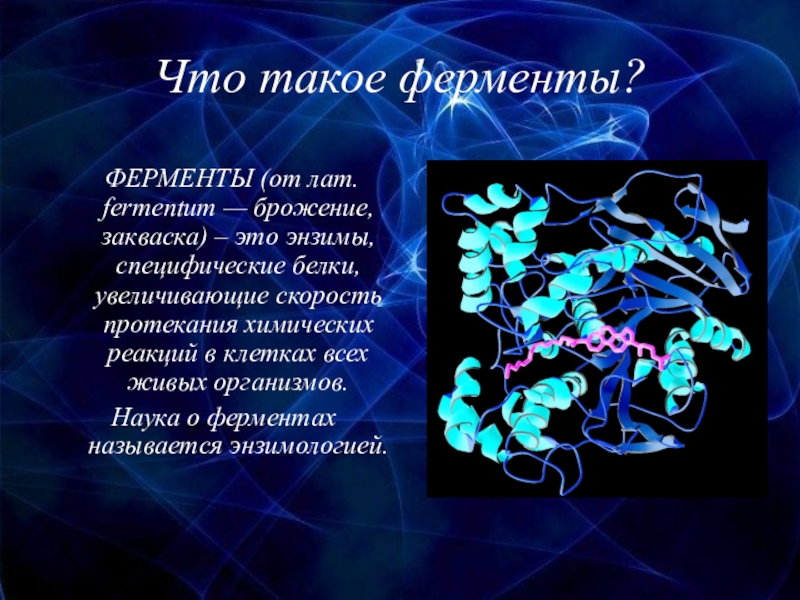 – это энзимы, специфические белки, увеличивающие скорость протекания химических реакций в клетках всех живых организмов.