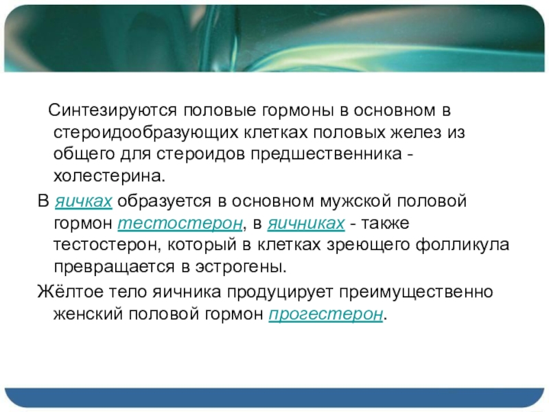 Слайд 21ПОЛОВЫЕ ГОРМОНЫ
