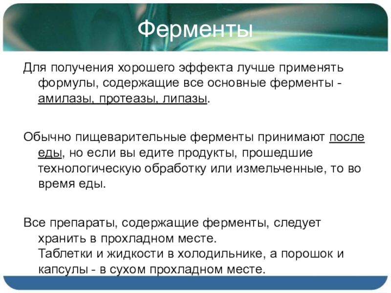 Все препараты, содержащие ферменты, следует хранить в прохладном месте.