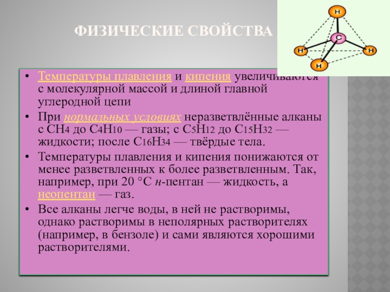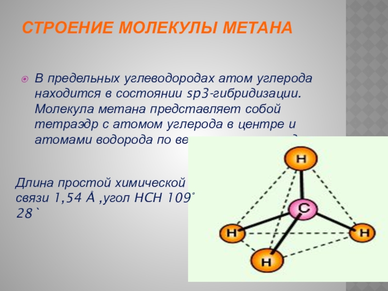 Длина простой химической связи 1,54 Å ,угол HCH 109°28`