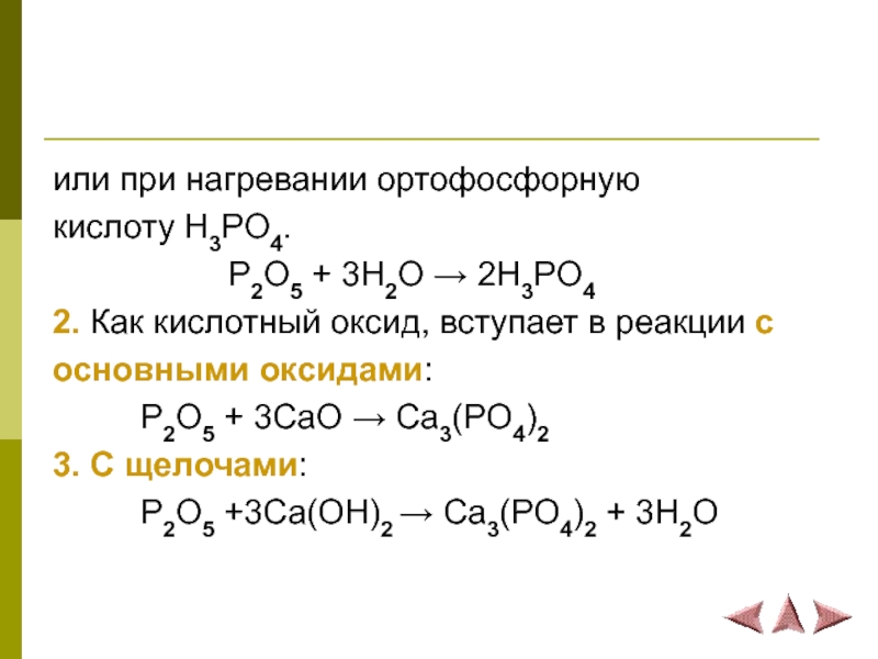 3CaO + 2H3PO4 → Сa3(PO4)2 + 3H2O