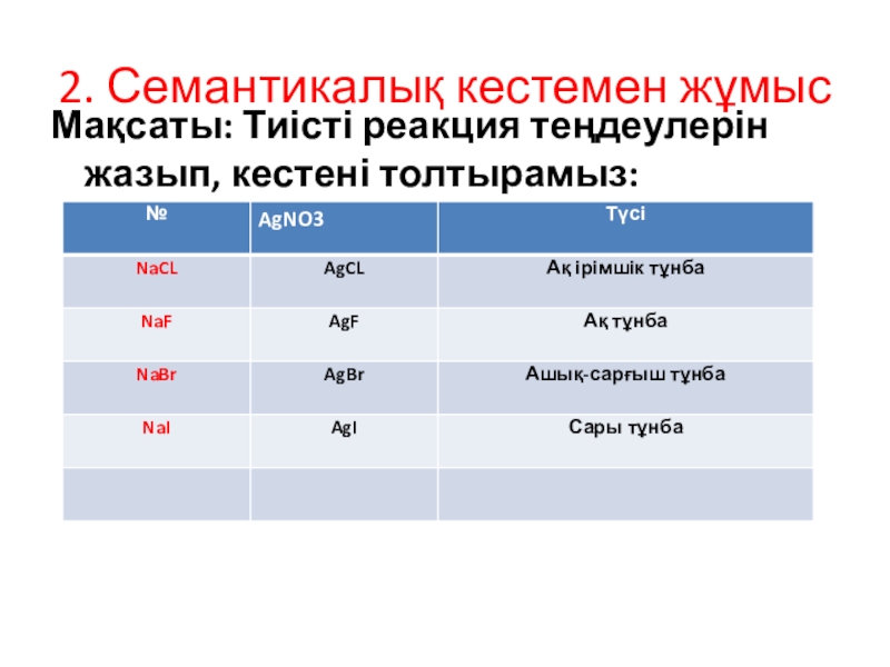 Слайд 132. Семантикалық кестемен жұмыс